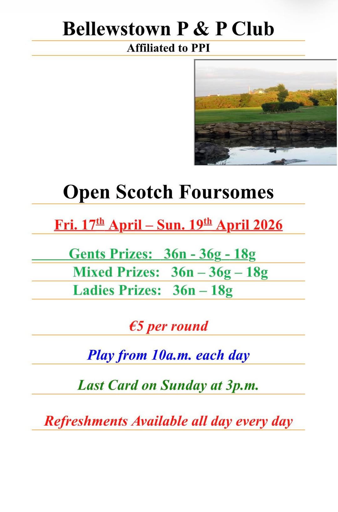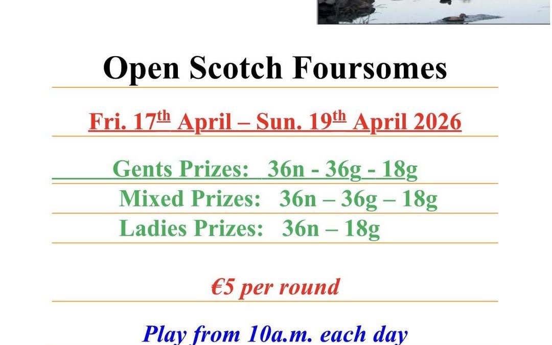Bellewstown open scotch foursomes starts this Friday 17th- Sunday 19th