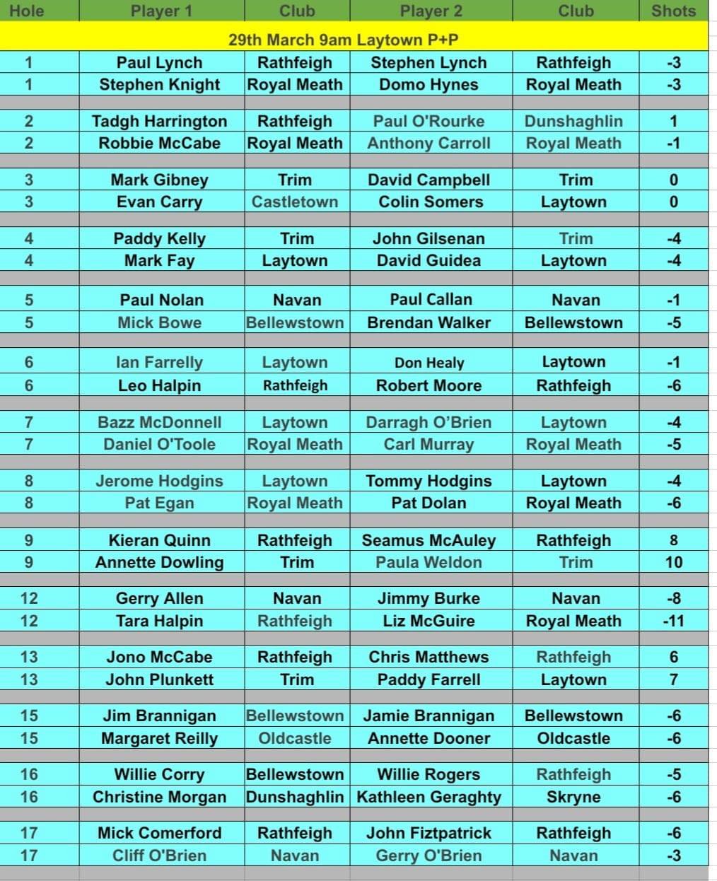 Leinster Non-mixed foursomes on 28th of March in Laytown at 9am, this is a shotgun start, anyone that turns up late will not be allowed play in any circumstances.