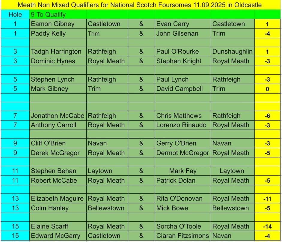 Qualifying for non mixed taken place in Oldcastle 11th of October 9am shotgun start please be 15mins 10/10/25 | Uncategorized Qualifying for non mixed taken place in Oldcastle 11th of October 9am shotgun start please be 15mins before tee off Source