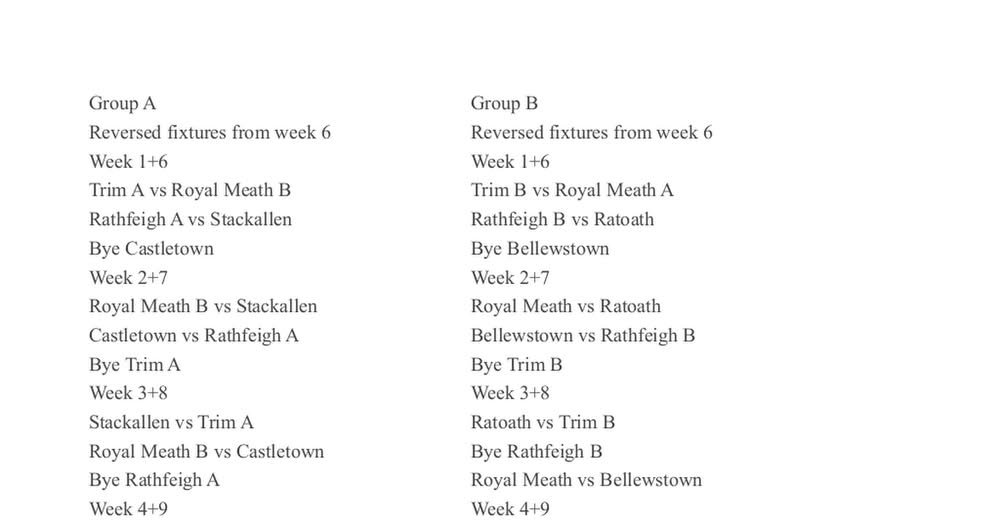 - This week sees return of Meath leagues, please have all matches can be played Monday to Friday.