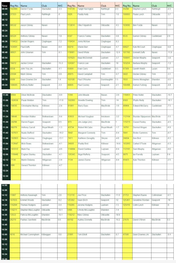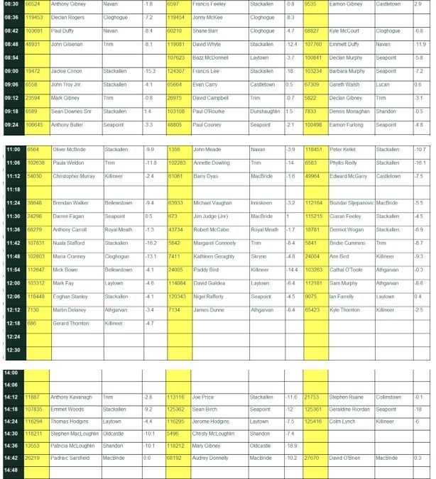 • Times for Sundays Leinster Matchplay Qualifier in Trim. 9am start an please be 15mins before your te